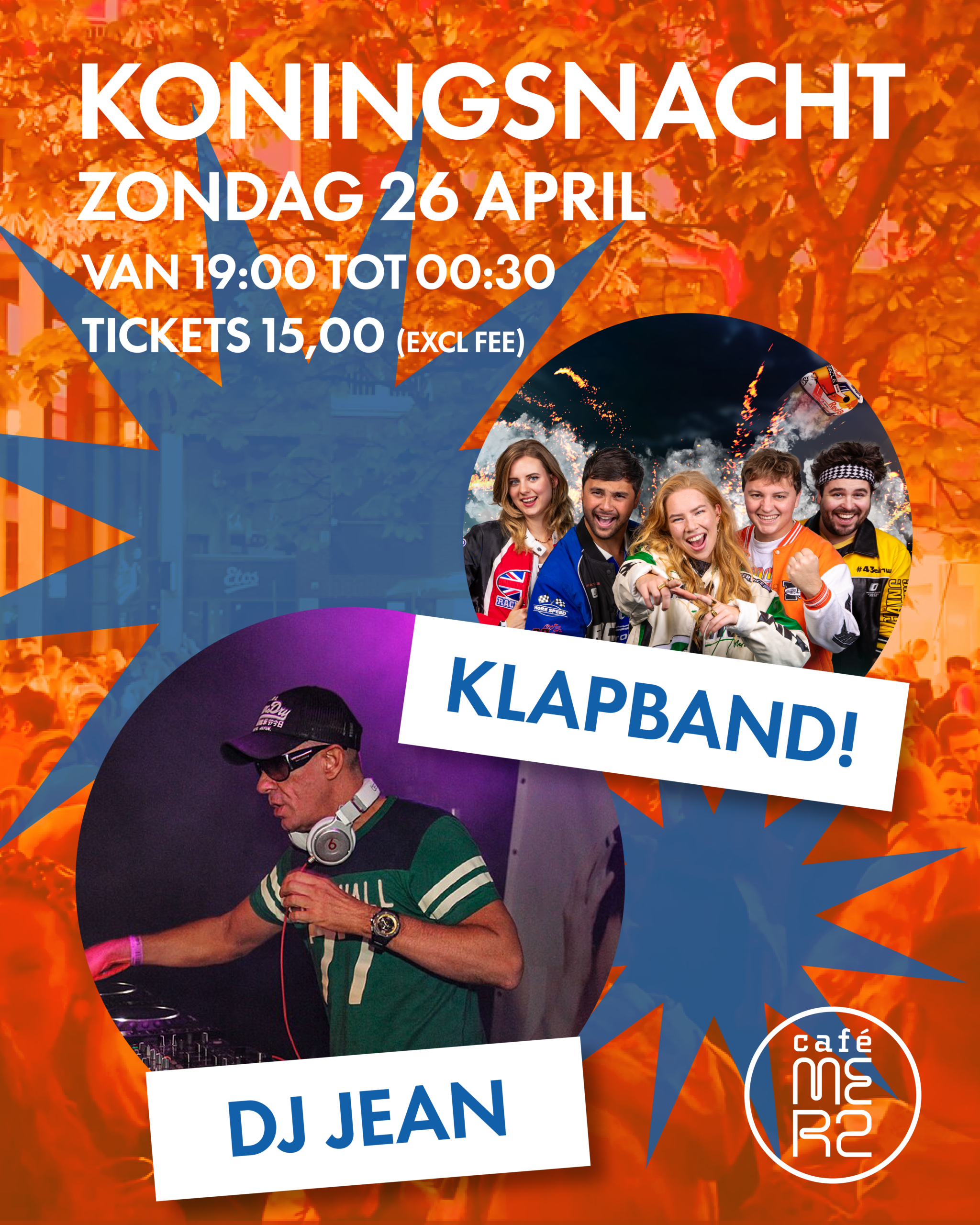 ✨ Koningsnacht – Zondag 26 April ✨ We starten de festiviteiten om 19:00 uur en gaan door tot 00:30! Dit jaar met coverband Klapband! en DJ JEAN op het podium! 🎤💃ook DJ Corrito en DJ Joeri zorgen voor de beste beats die je niet wilt missen! 💥🕺